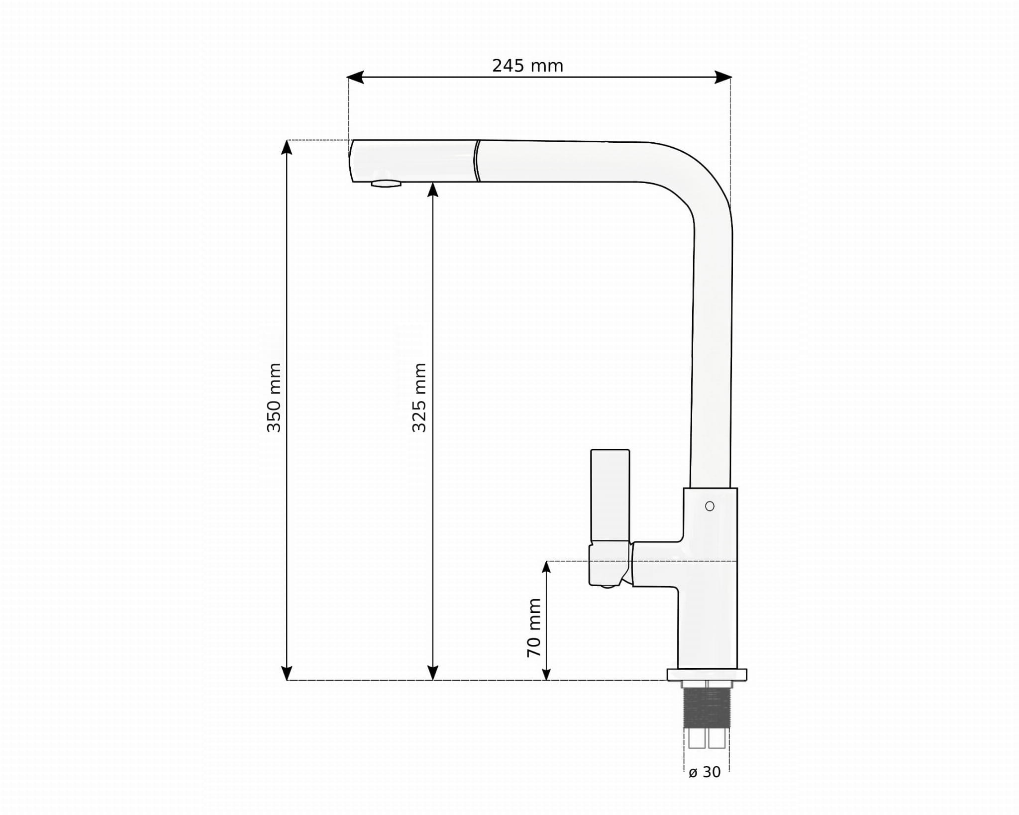 Wylewka umieszczona na wysokości aż 30 cm sprawia, że wkładając i wyjmując naczynia ze zlewu nie trącamy nimi o wylewkę. Dodatkowo model ten znakomicie się nadaje do instalacji zarówno centralnie za komorą zlewu jak i w jej rogach - dzięki długiej wylewce (ujście wody 21,5 cm od otworu montażowego) strumień wody sięga dalej położonych miejsc komory zlewu.