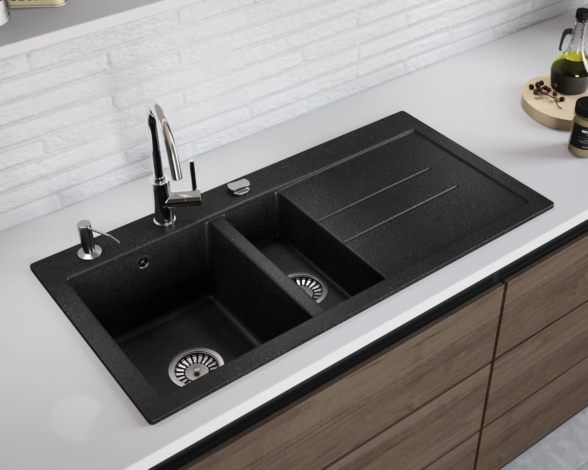 - Paleta kolorów: Oferujemy nasze zlewozmywaki w 6 kolorach, w tym 4 różne warianty koloru czarnego. Dzięki temu możemy zagwarantować dopasowanie do Twojej kuchni.
