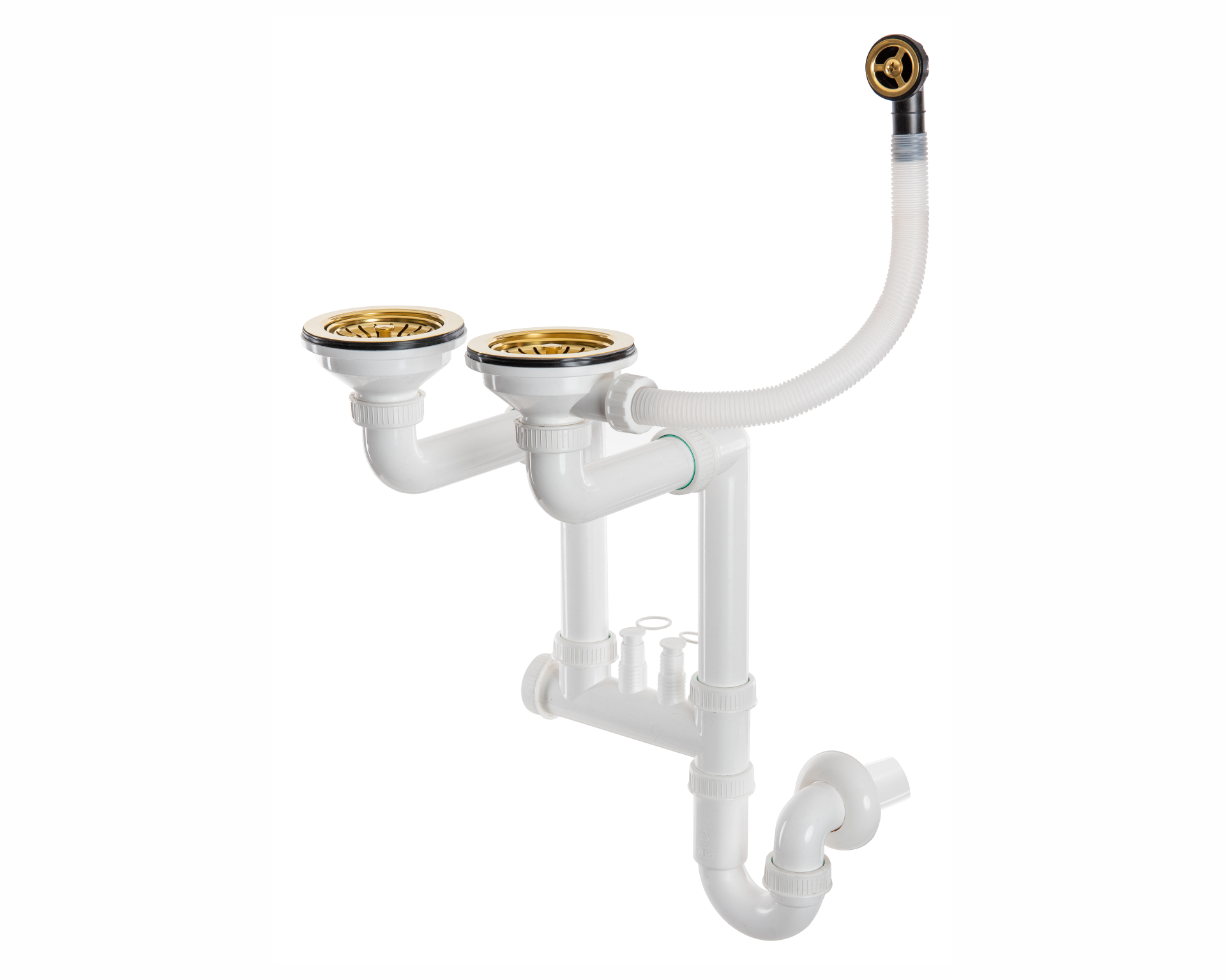 Typ: syfon przyścienny - nie wymaga tyle miejsca pod zlewem co tradycyjne syfony starego typu. Dzięki temu możliwe jest lepsze wykorzystanie przestrzeni w szafce pod zlewem.